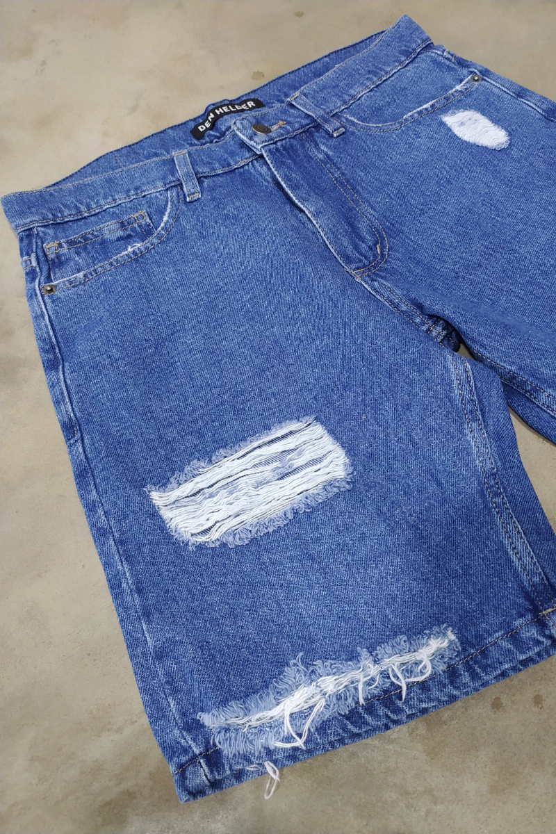 Confeccionado en Denim rigido, con un calce Regular de piernas rectas, cinco bolsillos clasicos y roturas. Cierre frontal con cremallera y botón.
