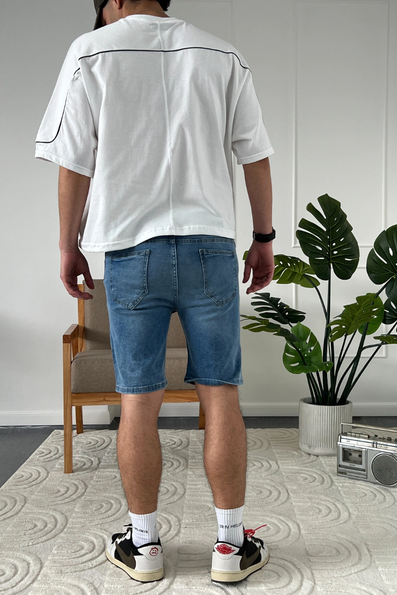 Confeccionada en Denim Elastizado, con un calce Skinny fit, esta bermuda cuenta con efectos de desgaste suaves