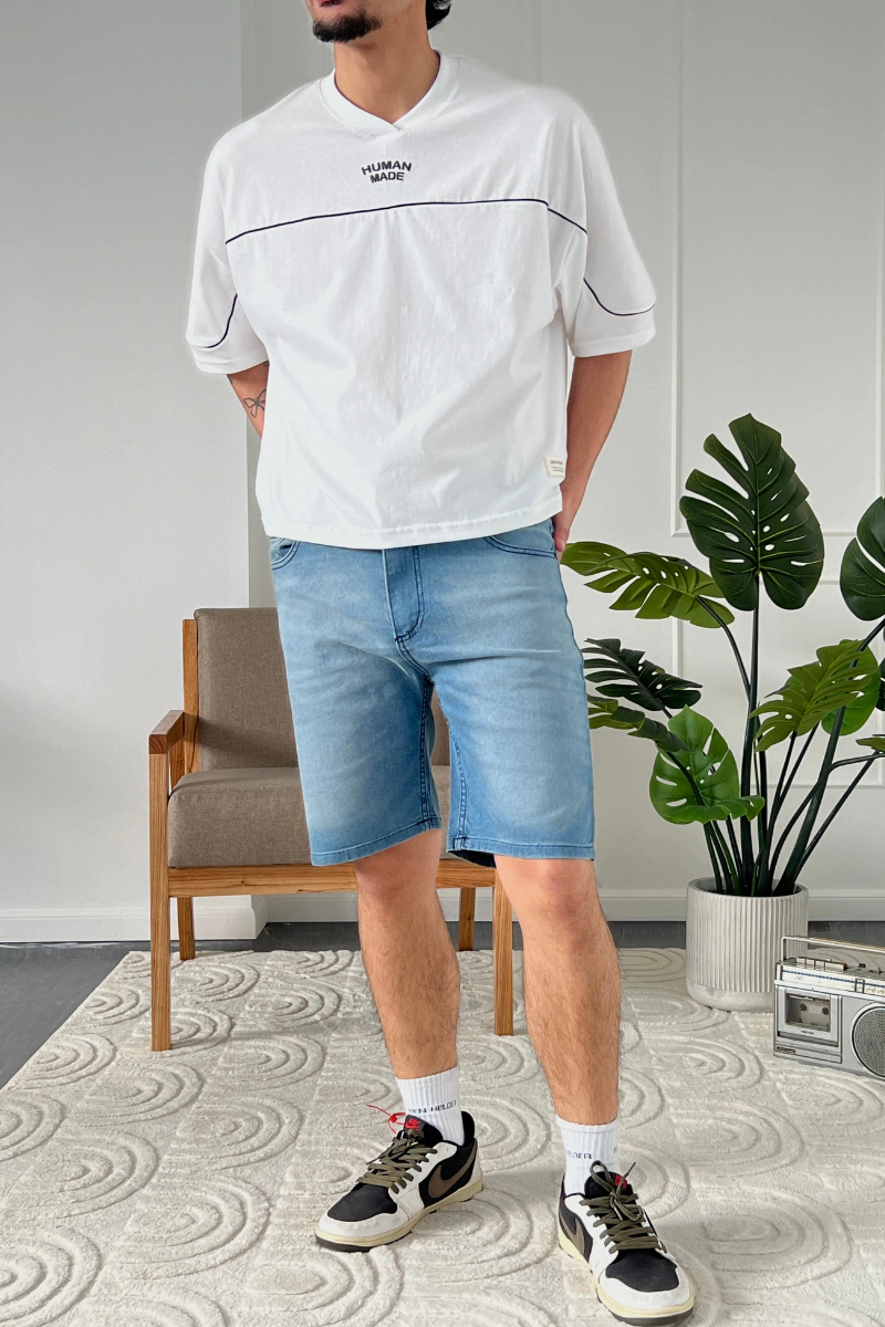 Confeccionada en Denim Elastizado, con un calce Skinny fit, esta bermuda cuenta con efectos de desgaste suaves hechos con tratamiento laser en su parte delantera, cinco bolsillos clasicos, cierre frontal con cremallera y boton.