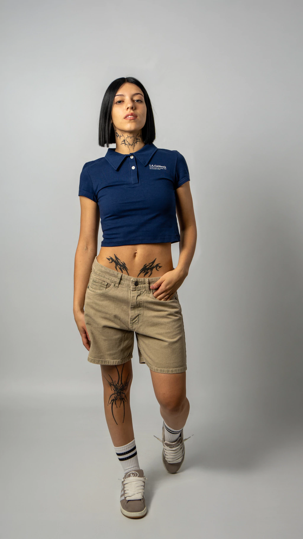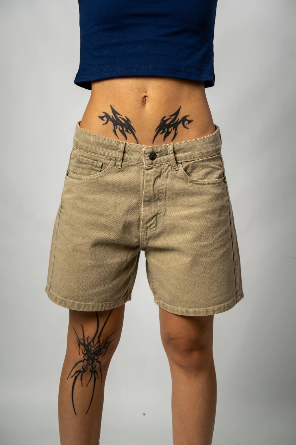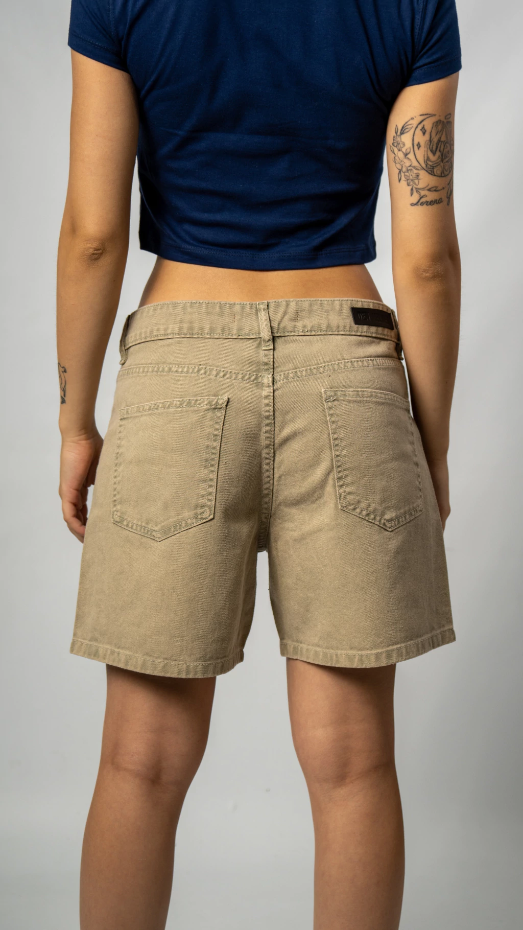 Confeccionada en Bull rigido, con un calce Regular de piernas rectas por encima de las rodillas, cinco bolsillos clasicos y un teñido con efecto acidwash. Cierre frontal con cremallera y botón.