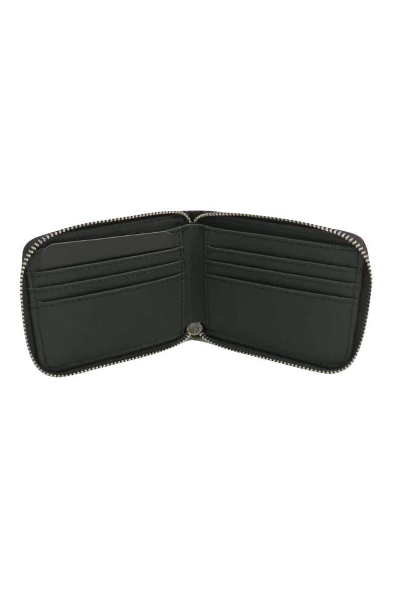 Billetera de Simil Cuero , cierre externo tipo monedero, porta tarjetas y bolsillos internos.
