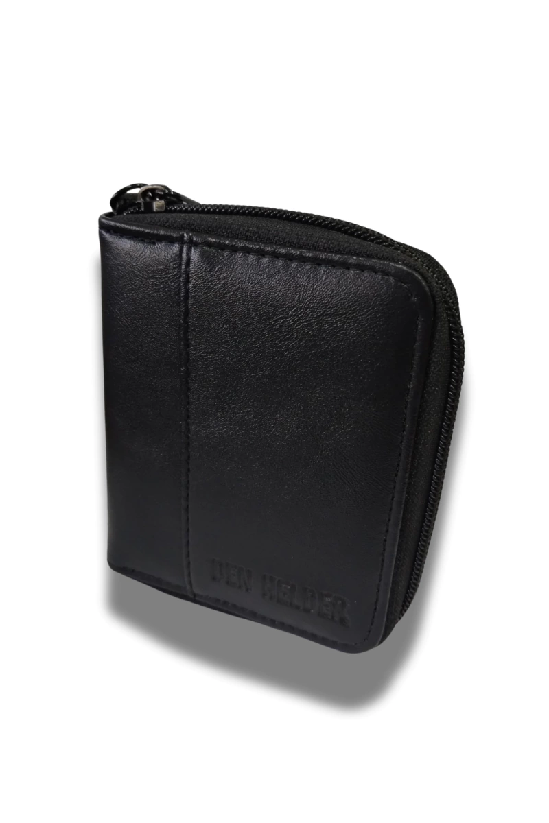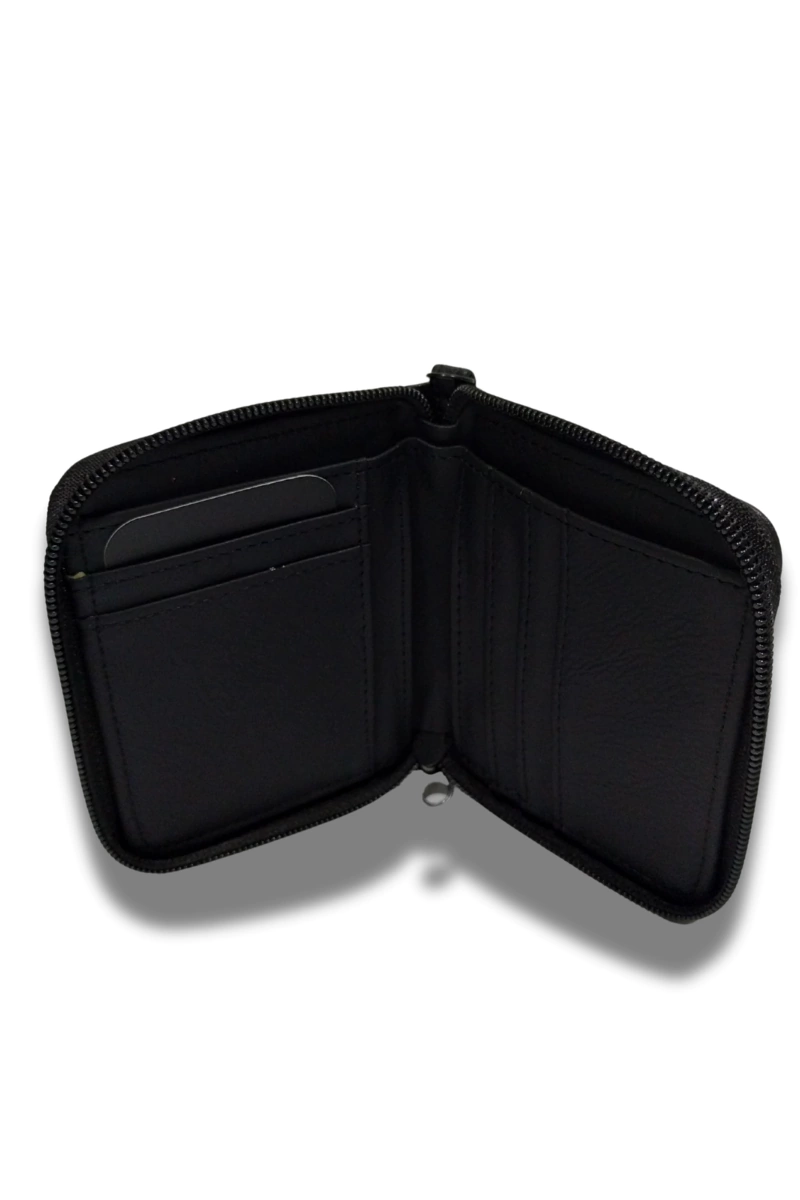 Confeccionada en simil Cuero, esta billetera estilo monedero cuenta con :