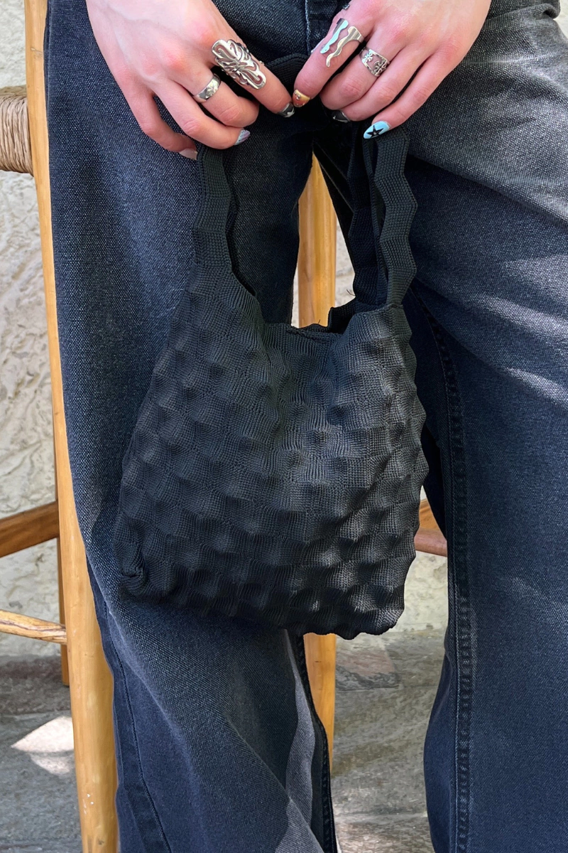 HandBag tejido, bondeado con strap corto y cierre superior con broche metalico.