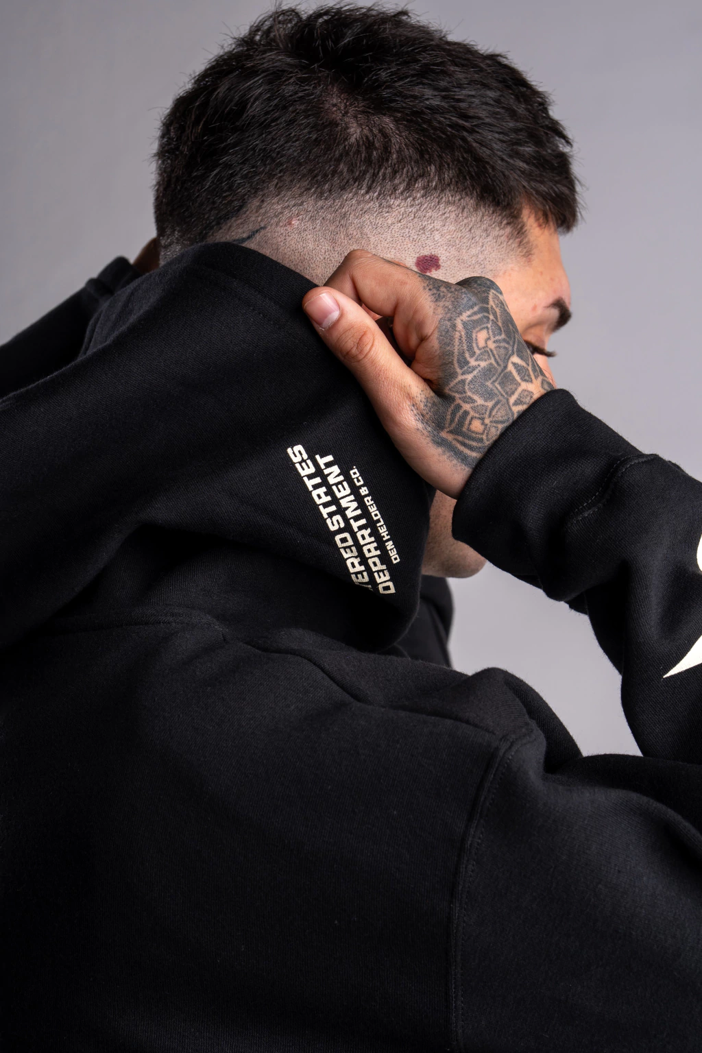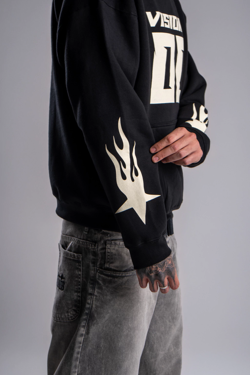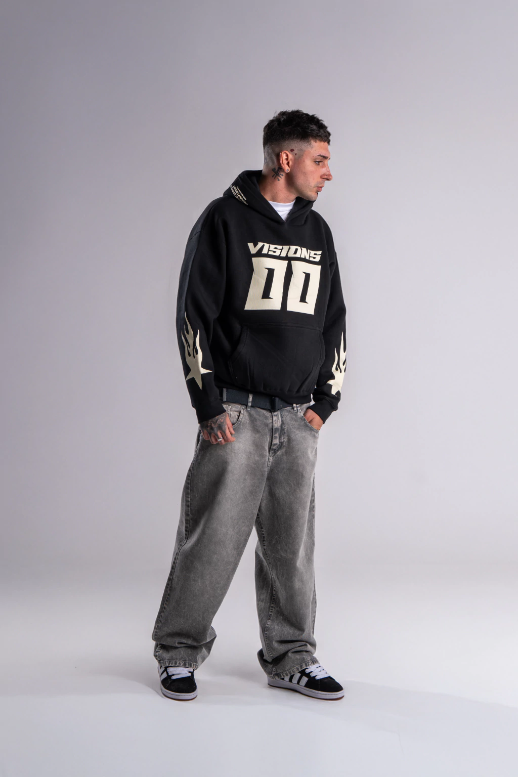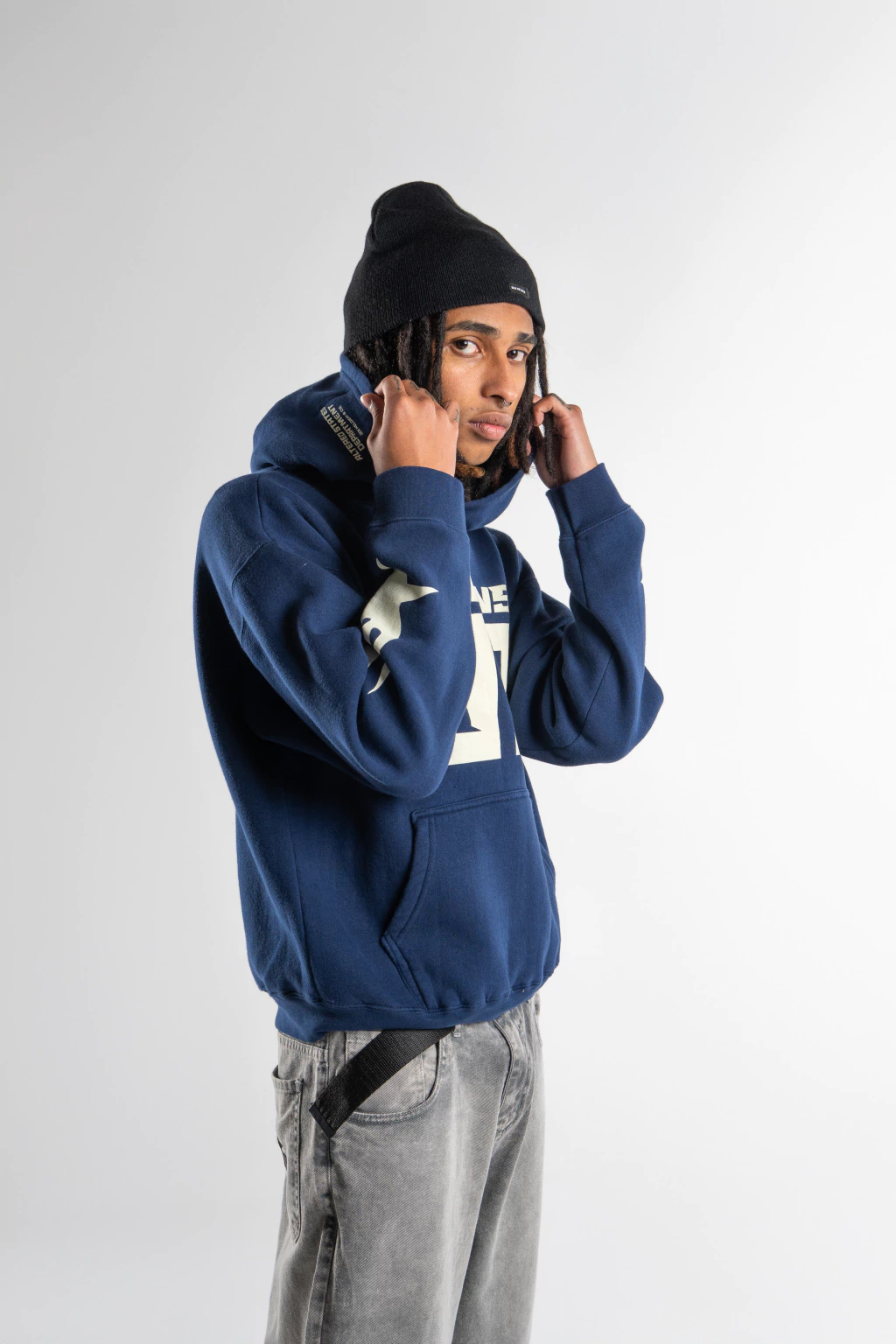 Confeccionado en algodón frisado, este Hoodie con calce Boxy cuenta con capucha y bolsillos tipo canguro.El mismo cuenta con estampa de en su parte delantera , como tambien en ambas mangas y una pequeña estampa en su parte lateral de su capucha.