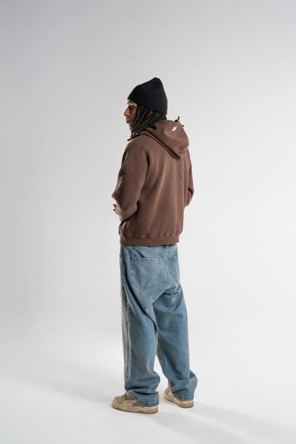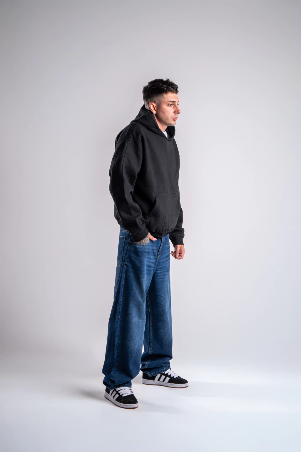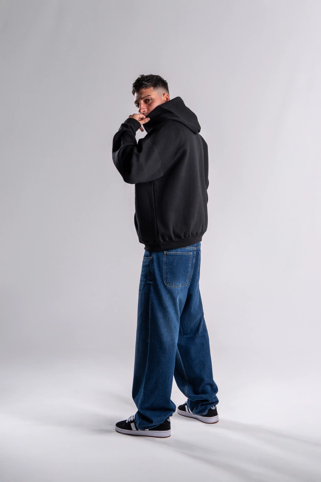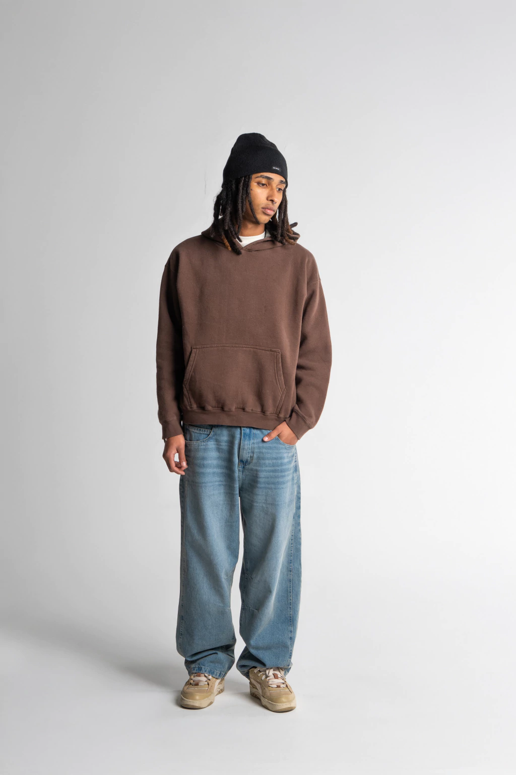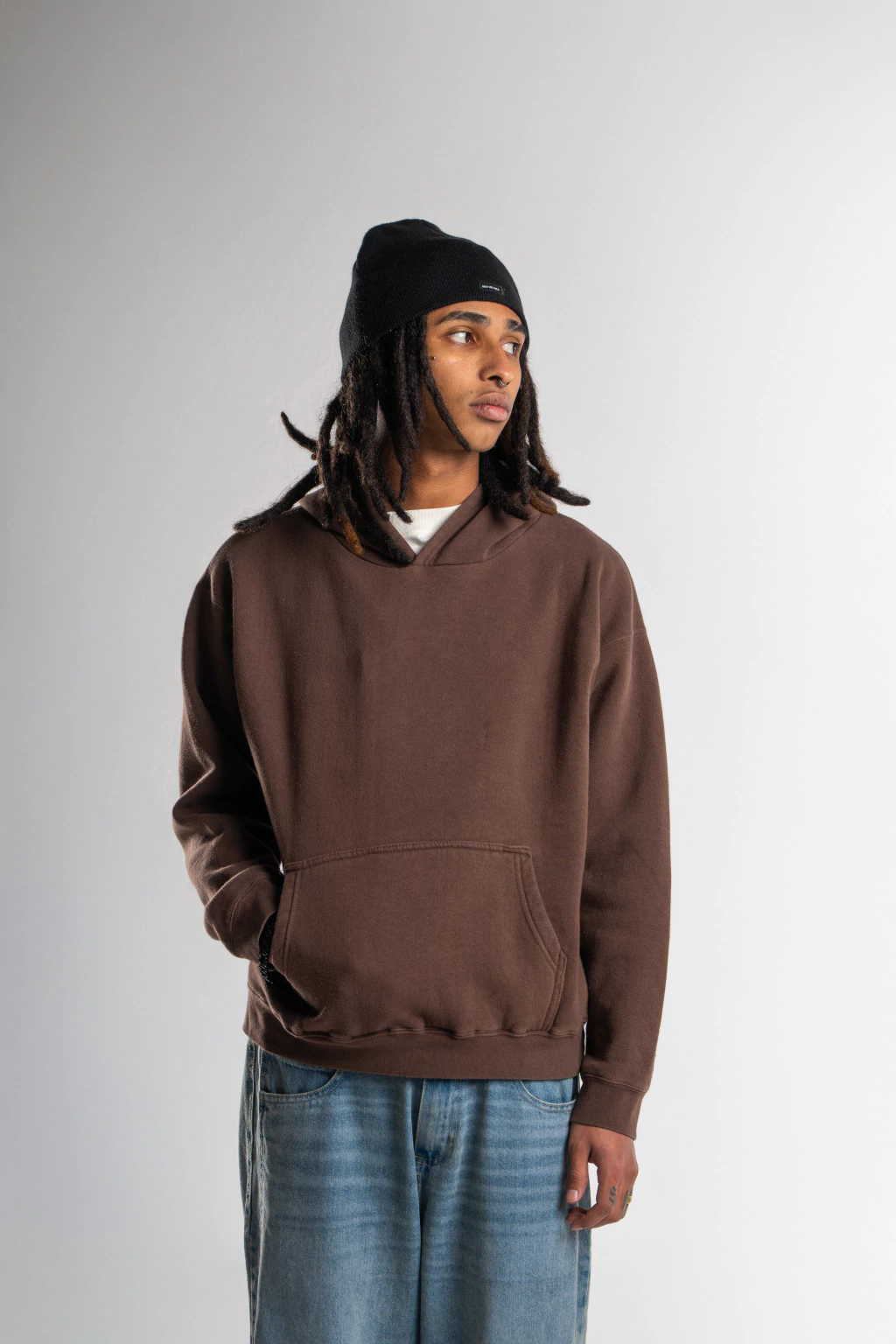 Confeccionado en algodón frisado, este Hoodie con calce Boxy es un basico ideal para cualquier outfit, sin estampas y con una pequeña grifa cocida en su capucha. Bolsillos estilo canguro al frente.