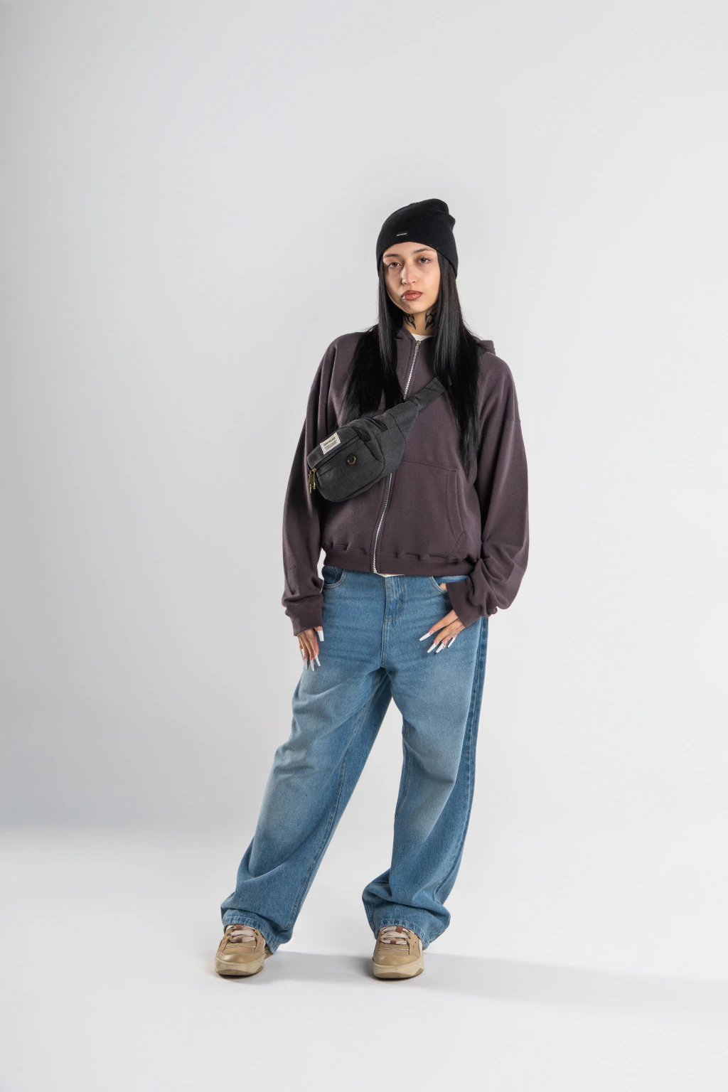 Confeccionada en algodon Rustico, es una campera con corte Boxy , liviana y basica para completar cualquier outfit, cuenta con bolsillos tipo canguro, capucha con grifa cocida y cierre frontal.