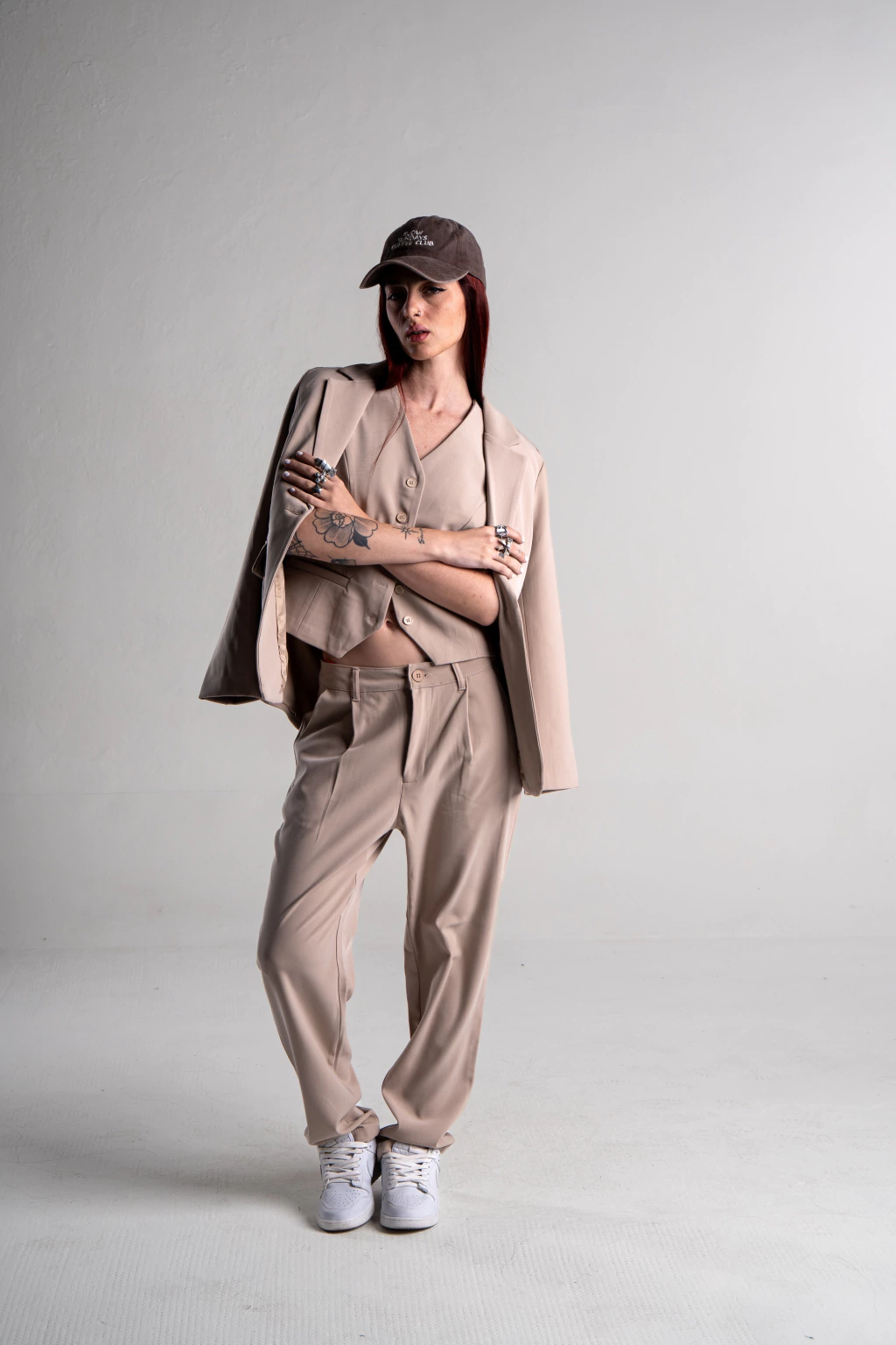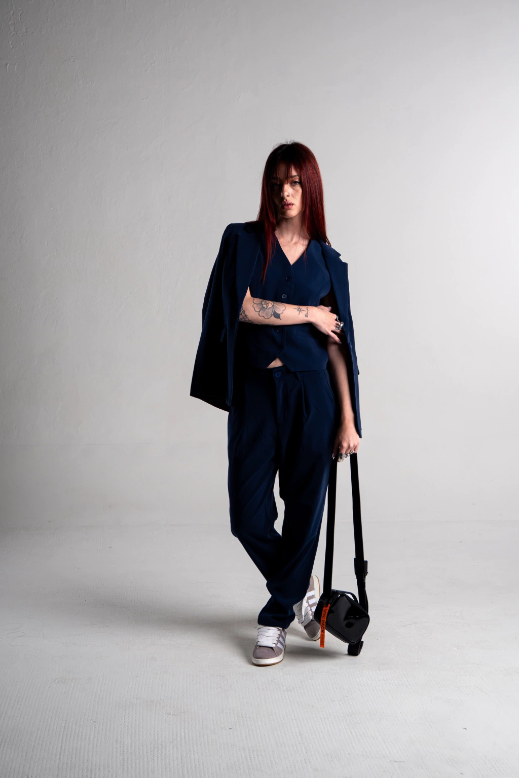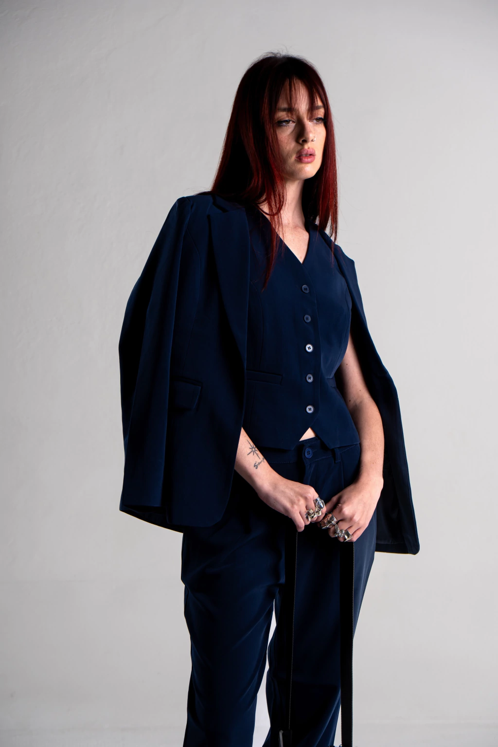 Nuestro conjunto sastretro Marais esta confeccionado en Gabardina sastrera, el mismo cuenta con 3 prendas