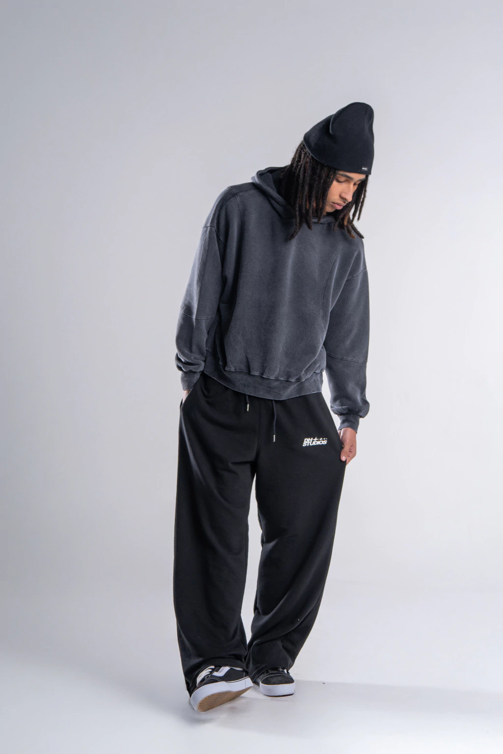 Nuestro Jogg Dyola esta confeccoinado en Algodon rustico, tiene un calce Baggy que lo hace realmente comodo, cuenta con cordones ajustables en la cintura y una pequeña estampa de nuestra capsula "DH STUDIOS" en su parte delantera.