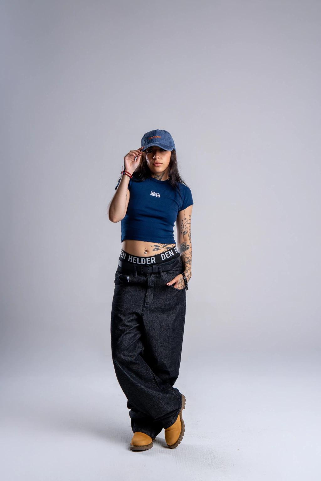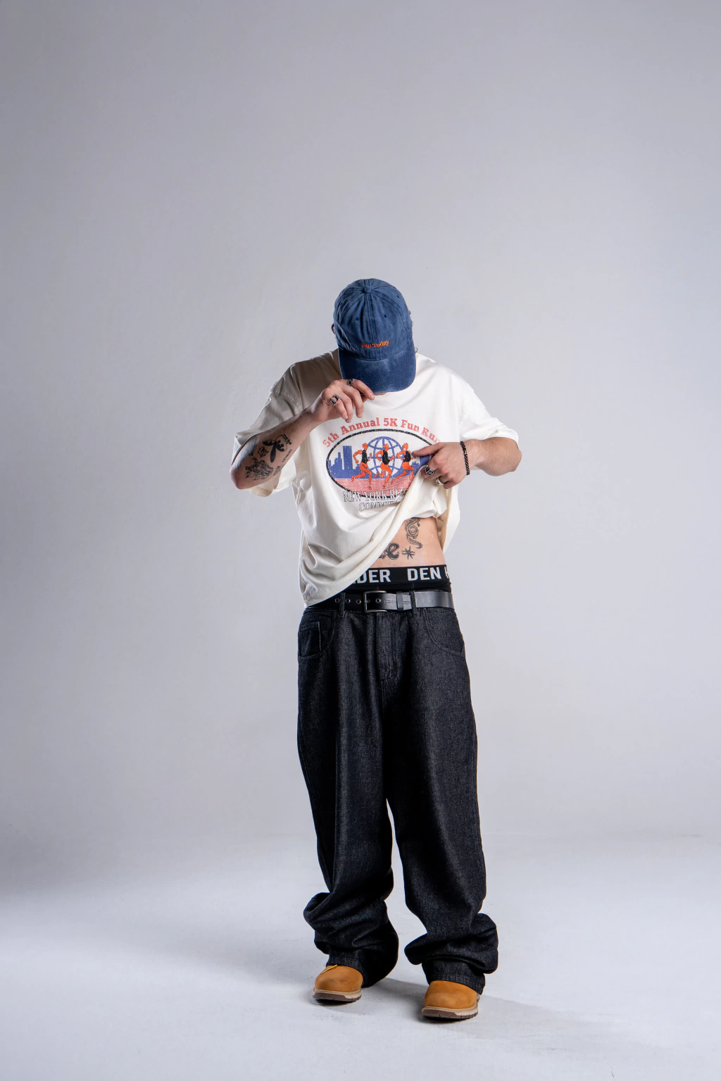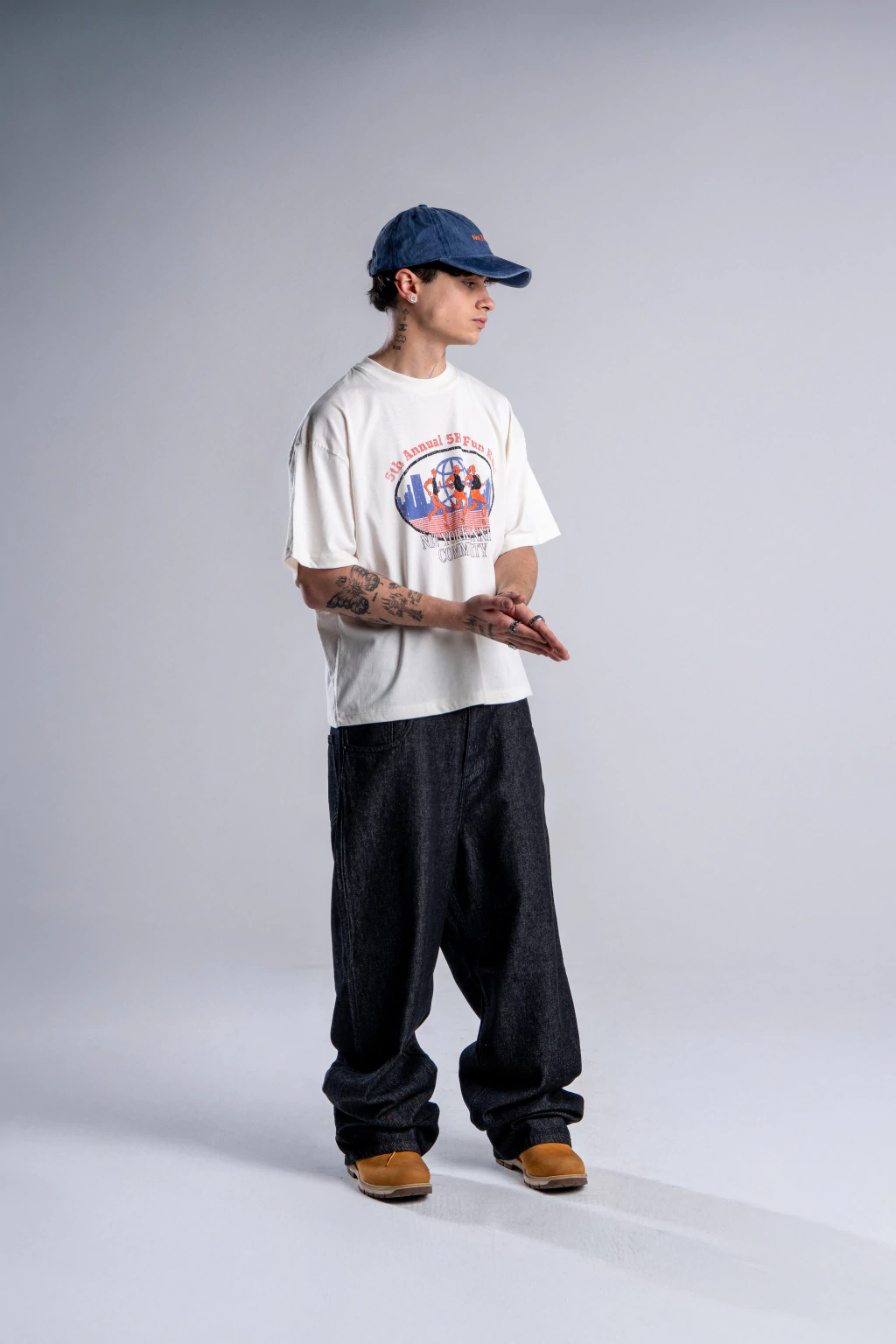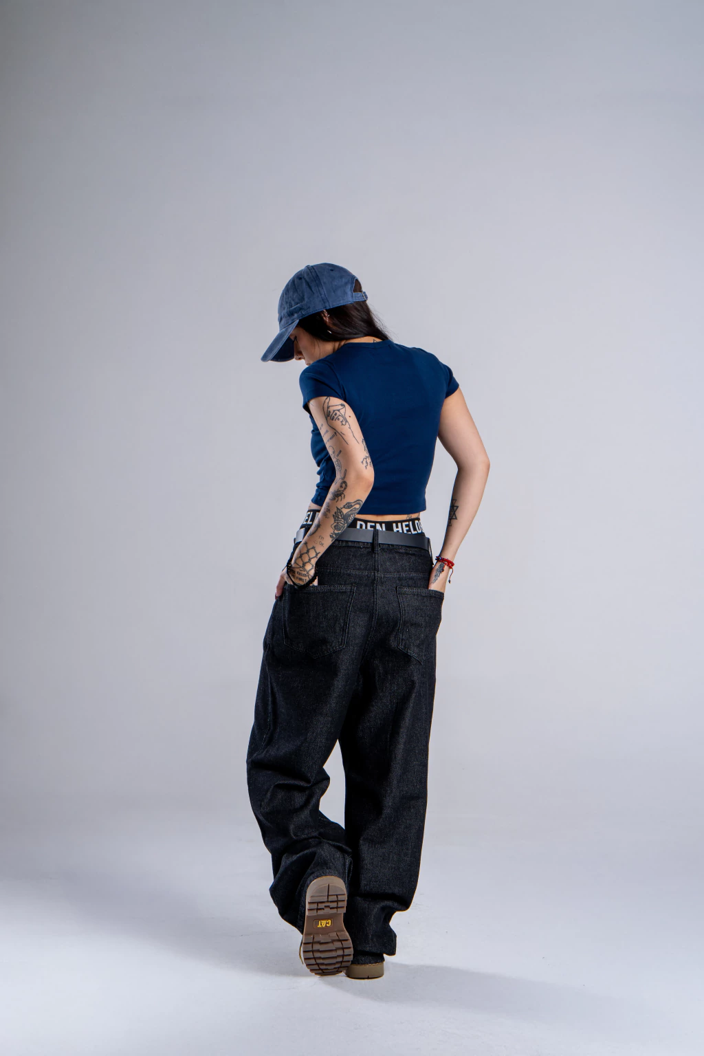 Confeccionado en Denim rigido, con un calce Super Baggy, cinco bolsillos clasicos y un prelavado estático que mantiene el aspecto y color original de la tela. Cierre frontal con cremallera y botón.