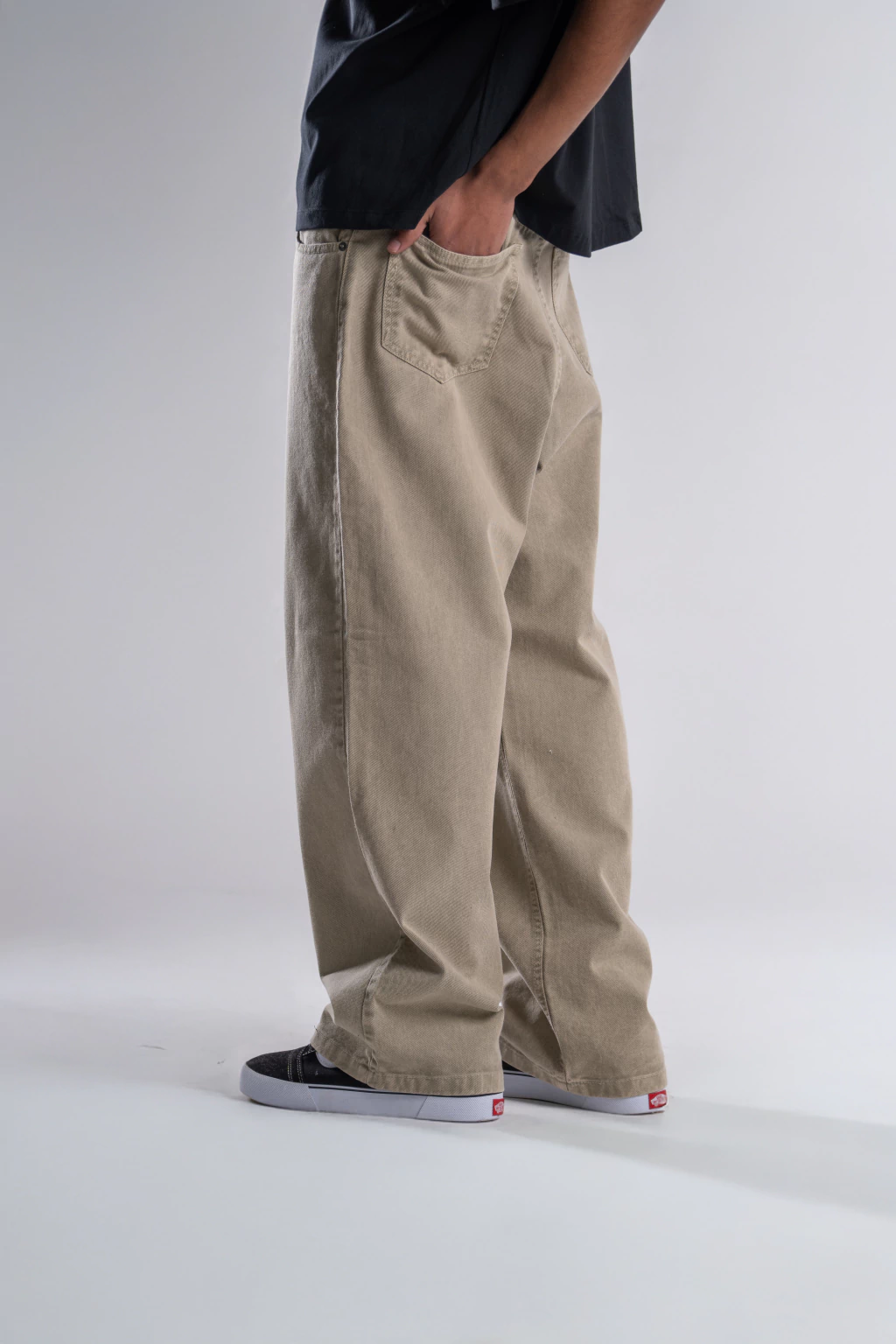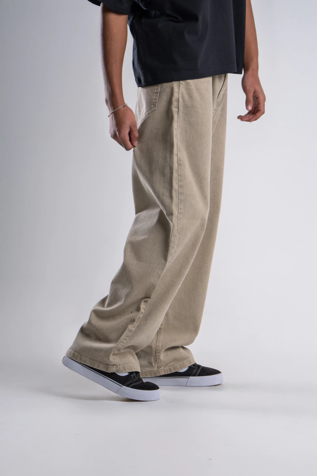 Confecionado en Bull rigido, este pantalon de gabardina tiene un calce BAGGY clasico, cuenta con un proceso de teñido Acidwash que le da un toque de color unico. Cierre frontal con cremallera y botón.