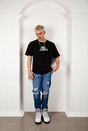 Confeccionado en Denim rigido, con un calce Loose de piernas rectas, cinco bolsillos clasicos, Roturas frontales y traseras . Cierre frontal con cremallera y botón.