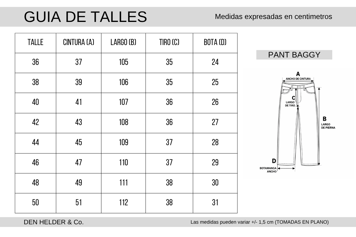 Corte holgado y amplio en toda la pierna. Tiro medio. Tejido rígido.