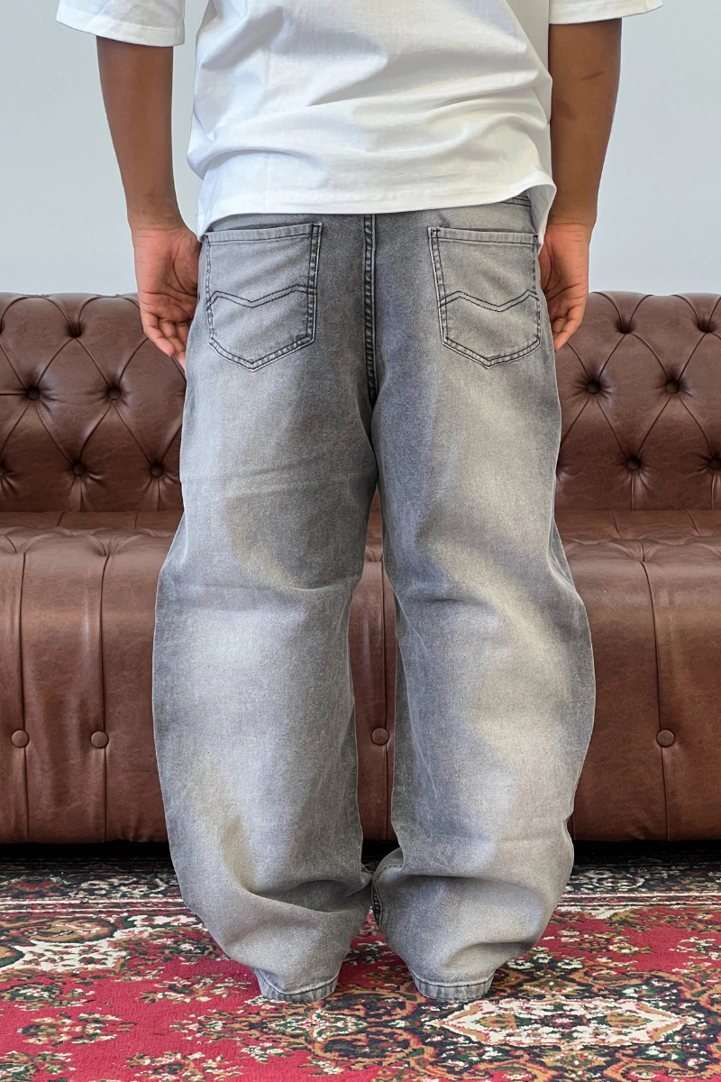 Confeccionado en Denim, con un calce Baggy, cinco bolsillos clasicos y un efecto de desgaste suave. Cierre frontal con cremallera y botón.