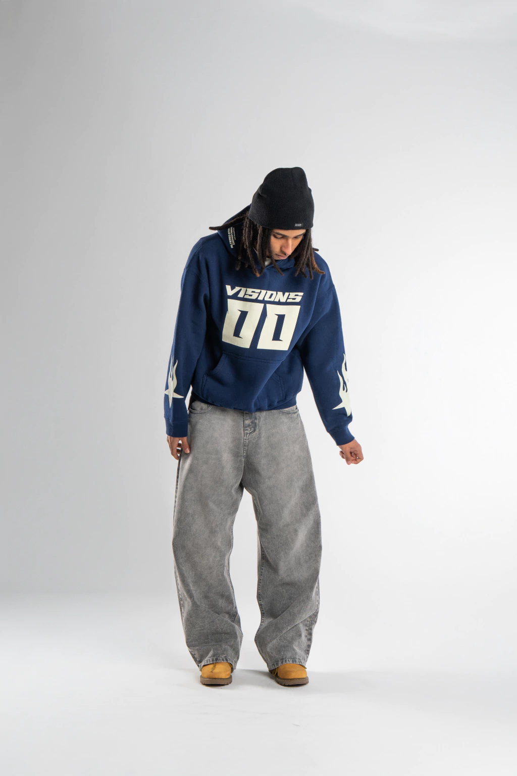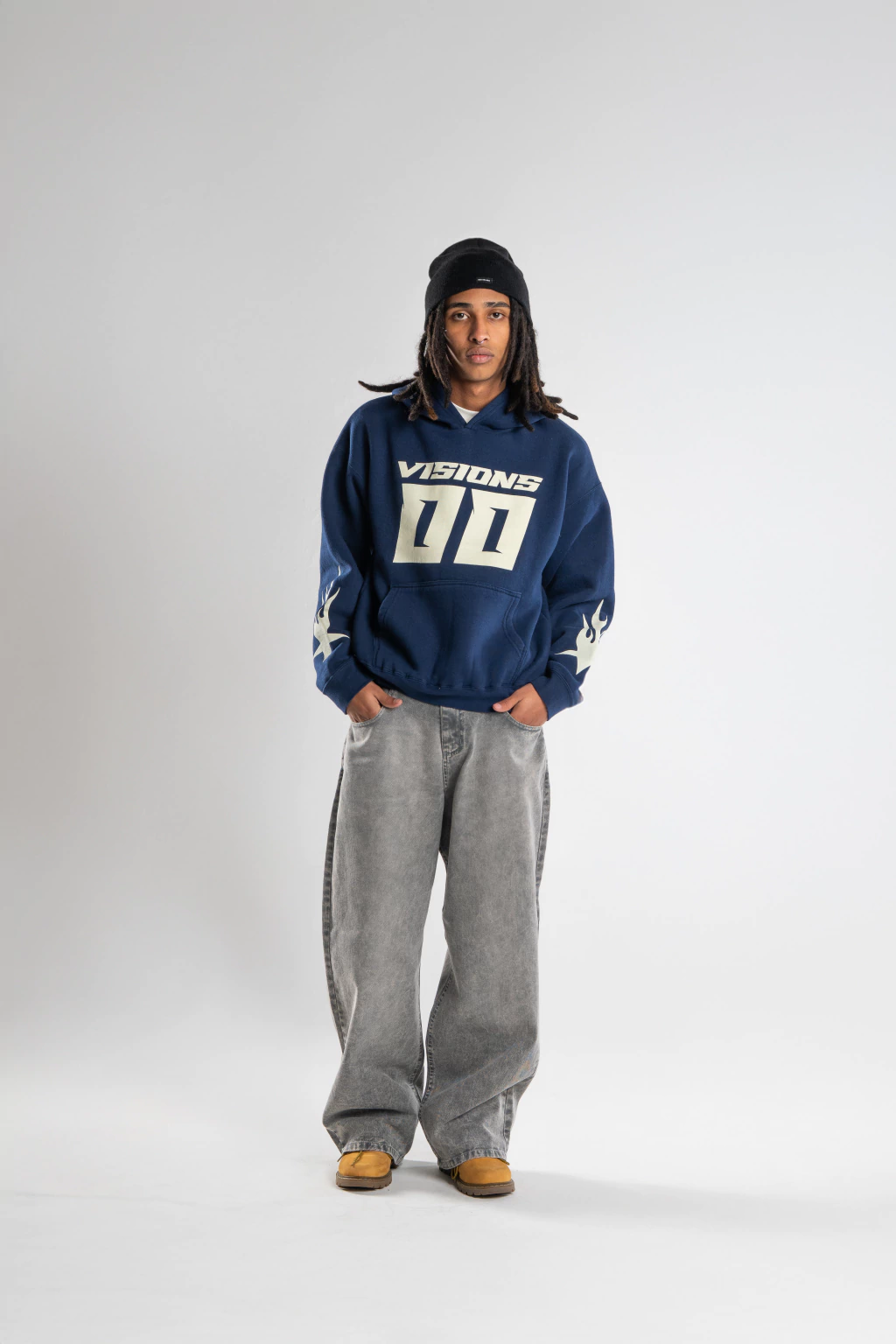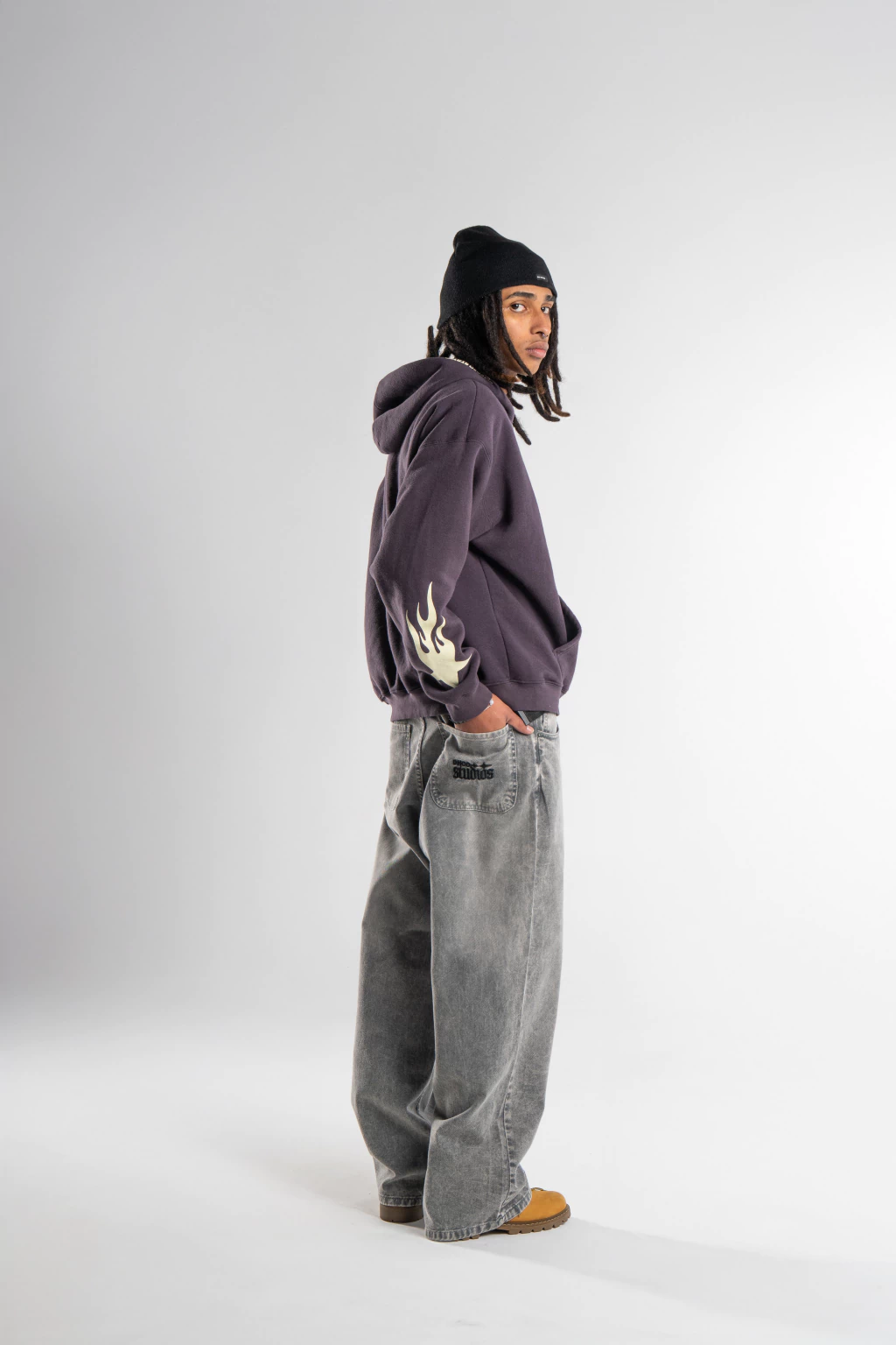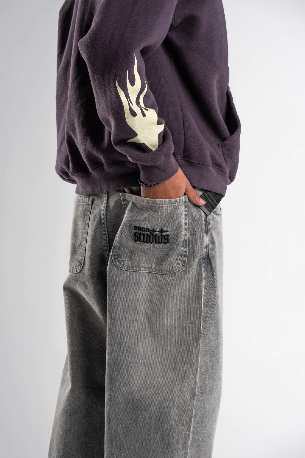 Confeccionado en Gabardina, con un calce Baggy y un detalle bordado en bolsillo trasero de nuestra linea "DH STUDIOS". Cierre frontal con cremallera y boton.