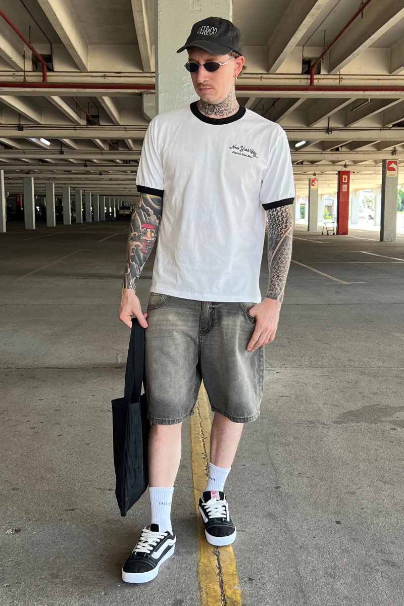 Confeccionada en jersey puro algodón, con calce Regular , esta remera tiene collaretas color negro en su cuello y ambas mangas.