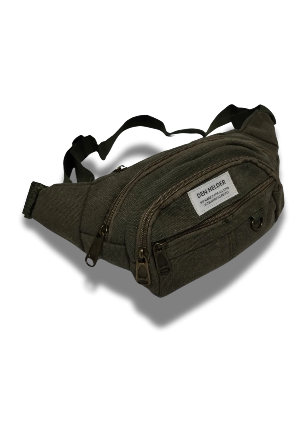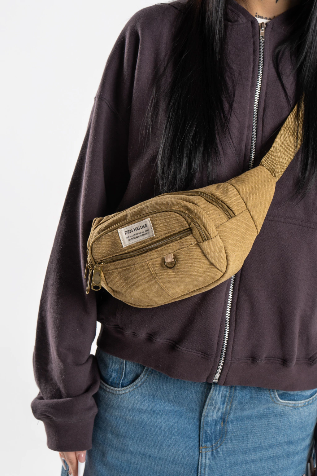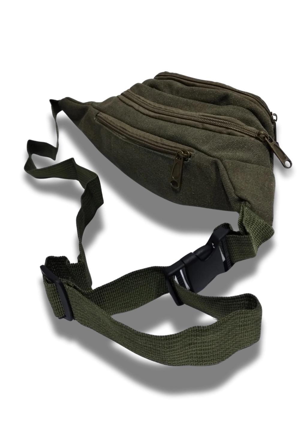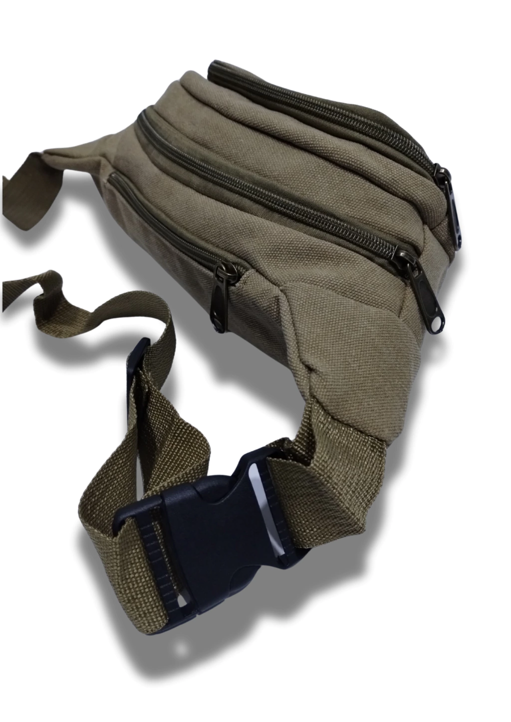 Confecionada en tela de Algodon gruesa (canvas), esta Riñonera cuenta con 4 compartimentos